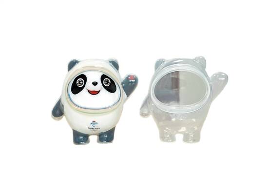 “冰墩墩”拥有熊猫形象和冰晶外壳。在生产上,一只“冰墩墩”的诞生分开为硅胶外壳的生产和毛绒公仔的制作。厂商制作外壳完毕后,送至毛绒厂组装,出售给零售商,最后面向消费者。