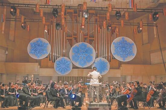 为了迎接2022年冬奥会在中国北京举办,作曲家郑君胜、郑君利两兄弟联手倾情创作的北京冬奥会交响组曲《冰雪相约》,于2月8日晚在北京中山公园音乐堂由北京交响乐团进行世界首演。2022北京新闻中心邀请了包括羊城晚报记者在内的50余名中外记者来到演出现场,共同感受交响乐演奏出的冬奥魅力。