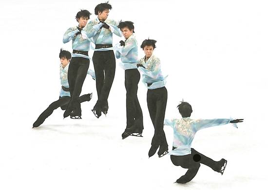 羽生结弦在比赛中尝试阿克塞尔四周跳(拼接照片) 新华社发