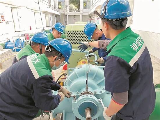 水厂机电维修人员进行设备维护