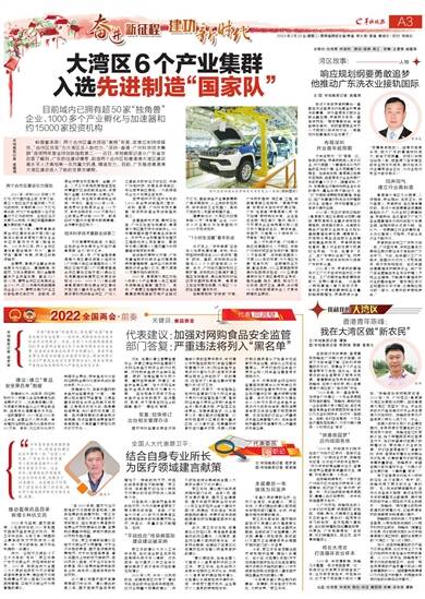 2021年,粤港澳大湾区内地9市有6个产业集群入选工信部先进制造业集群“国家队”。其中,广佛惠三地辐射带动全省超高清视频和智能家电产业超过万亿元;智能装备产业集群横跨广佛深莞四市,从上游的数控机床,到中游的工业机器人,再到下游的无人机都有明星产品。