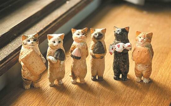 雕塑家说,这些小猫的原型都是她的家人或朋友家中的宠物,因为喜欢而收集了它们大量的表情、动作作为创作源泉。她也创作了不少原大的雕塑,但更多是做一些只能放在手掌中玩赏的木雕。“看着它们或咧着嘴笑或害羞或挑衅的各种嬉戏表情,总是让人感到十分快乐。”或许正是这种令人愉悦的感觉,才让这些小猫如此受欢迎吧。