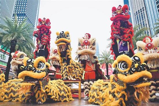 醒狮闹新春,是南粤最有特色的文化符号 羊城晚报记者 何奔 摄