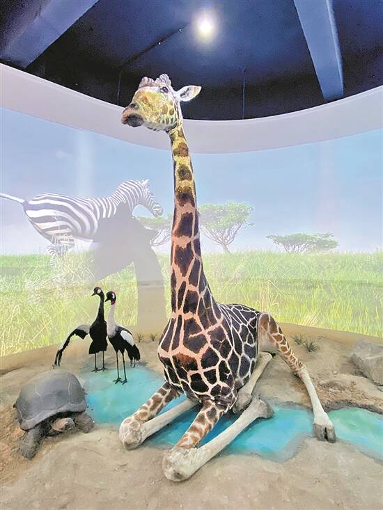 在广州动物园科普展览馆内,羊城晚报记者看到跪姿的“海朗”标本,栩栩如生。黄志宏说,这是按照“海朗”生前的照片原样复原的,这个姿势说明长颈鹿正在休息。据介绍,广州动物园动物死亡以后,有价值的动物会留下制成标本,剩下的统一按流程作无害化处理。黄志宏介绍,因为广州气候潮湿,标本容易发生虫害,留下来的动物标本一般价值很高。其余的动物一般都是制作模型进行展示。