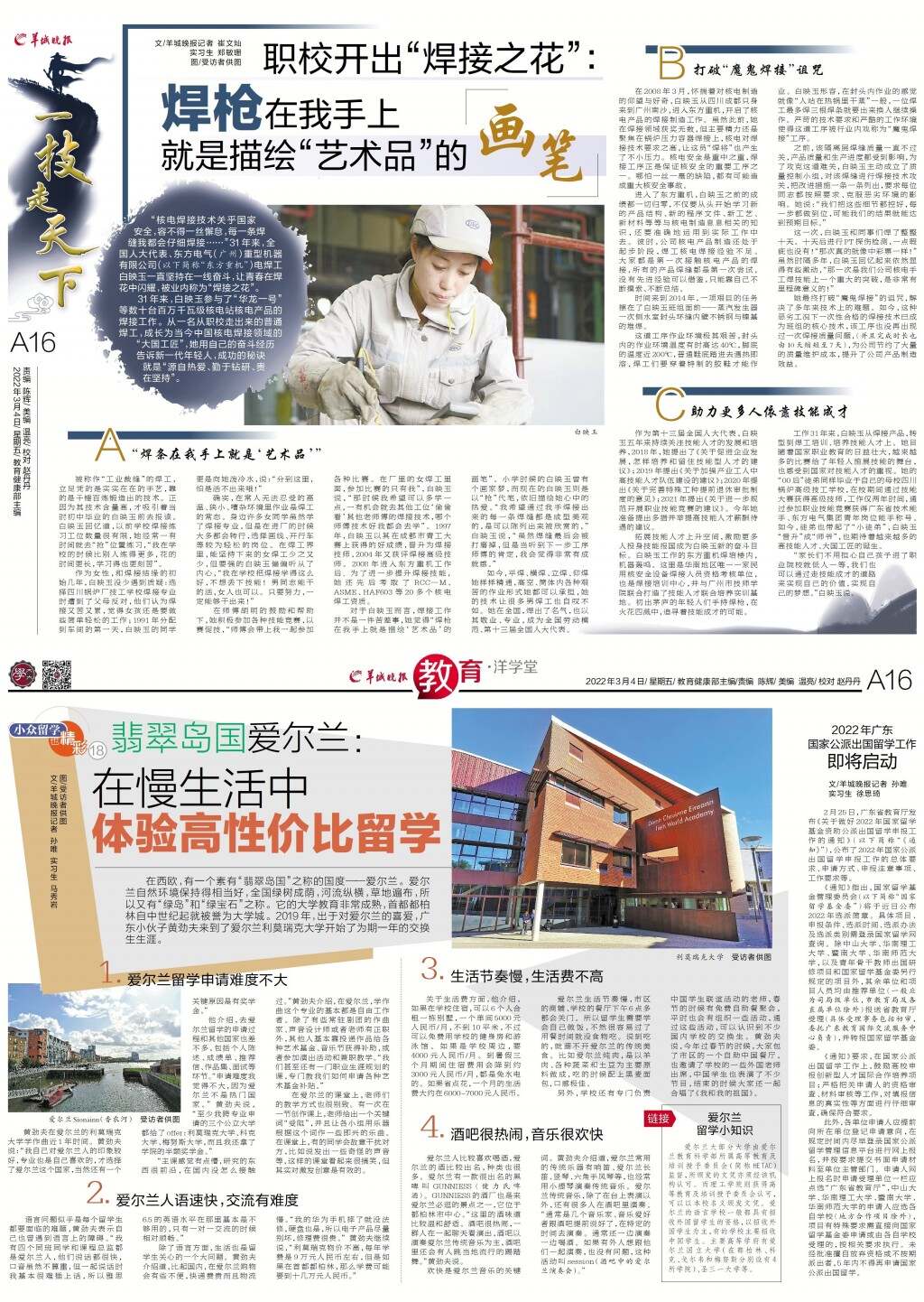 第A16版:一技走天下;教育·洋学堂