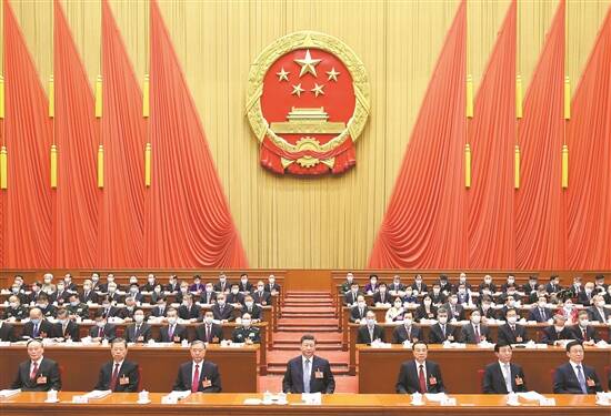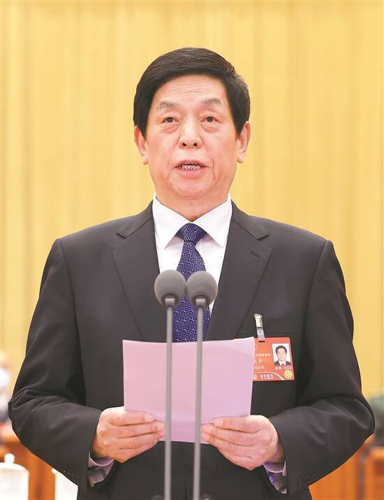 3月5日,大会主席团常务主席、执行主席栗战书主持大会 新华社发