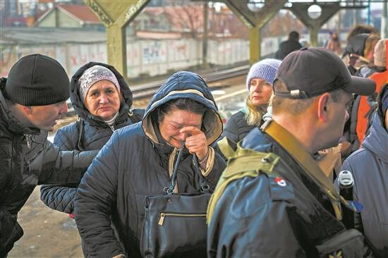 在意识到自己必须离开家乡成为难民后,基辅地区一名妇女不禁流泪 图/人民视觉