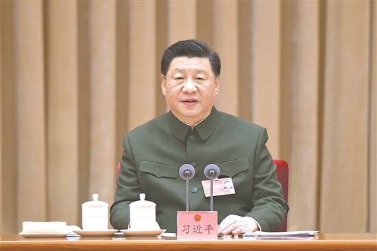 7日下午,中共中央总书记、国家主席、中央军委主席习近平出席十三届全国人大五次会议解放军和武警部队代表团全体会议并发表重要讲话 新华社发