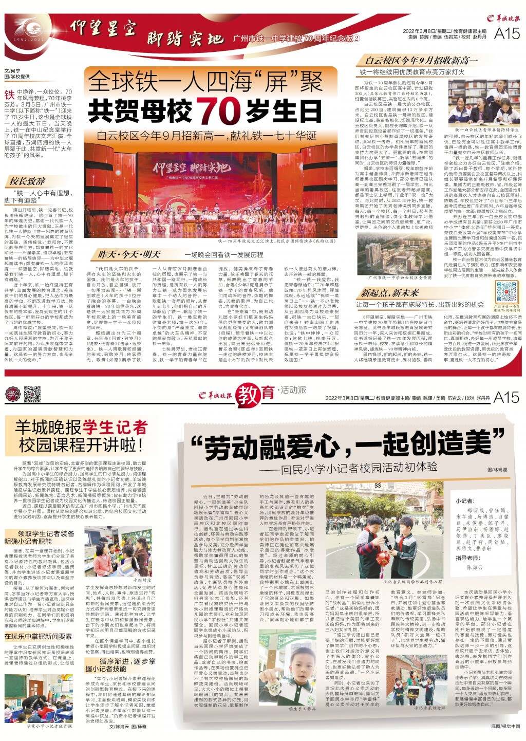 第A15版:仰望星空 脚踏实地 广州市铁一中学建校70周年纪念版②;教育·活动派