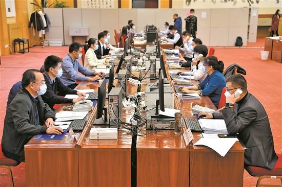 3月9日,十三届全国人大五次会议秘书处议案组建议小组工作人员正在批分处理代表建议 新华社发