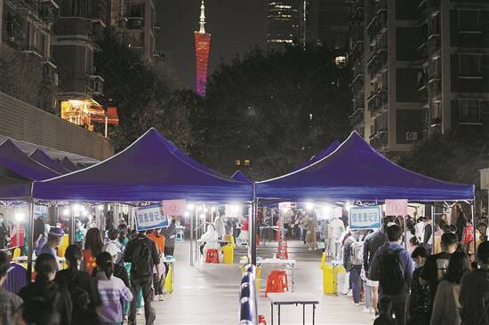 目前,广州正快速开展人群核酸检测。截至9日18时,共开设采样点127个,投入医护人员785人,对5个区21个区域启动全员核酸检测。