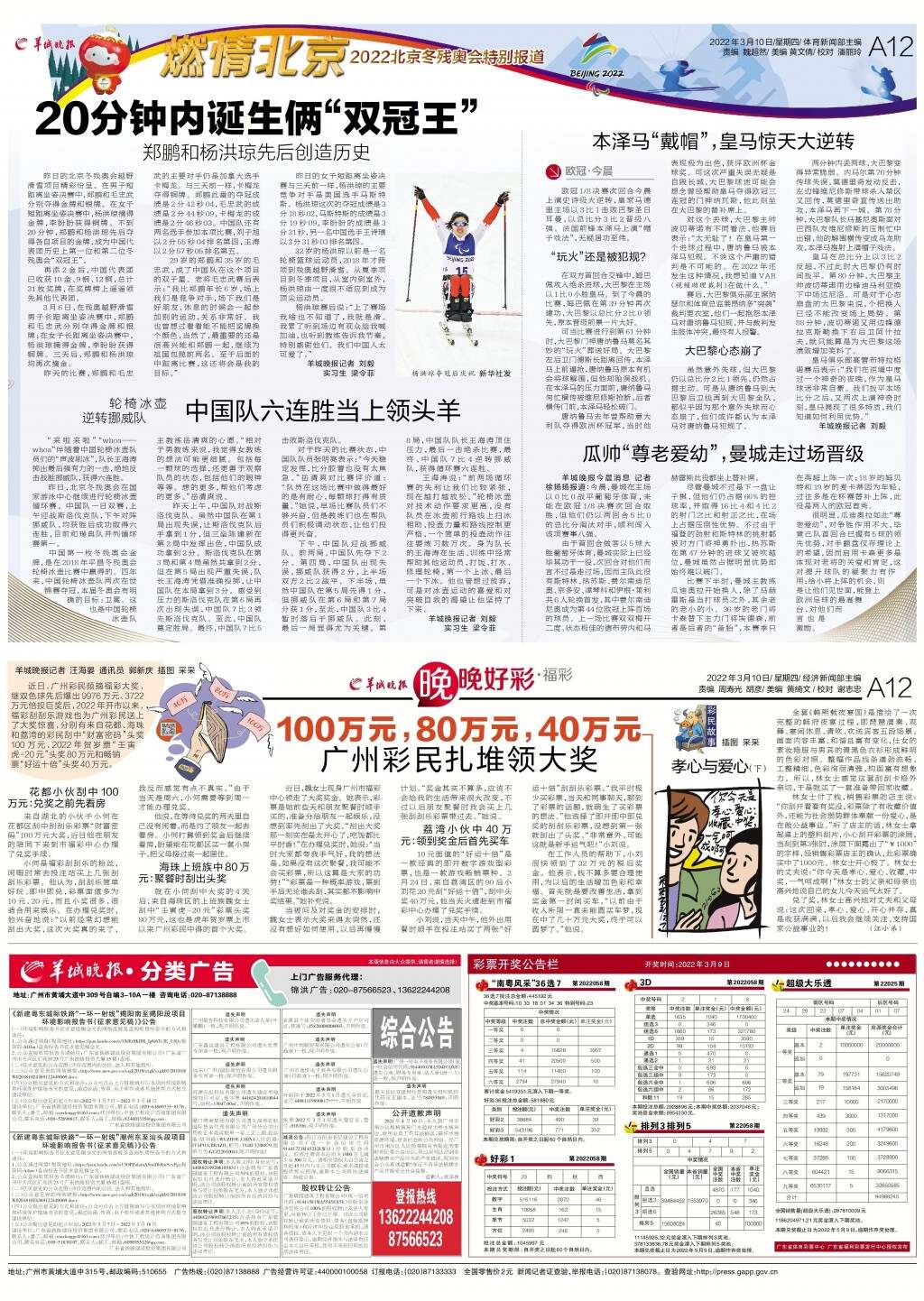 第A12G版:2022北京冬残奥会特别报道;晚晚好彩·福彩;广告