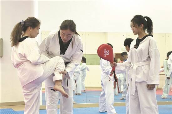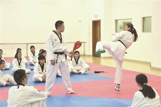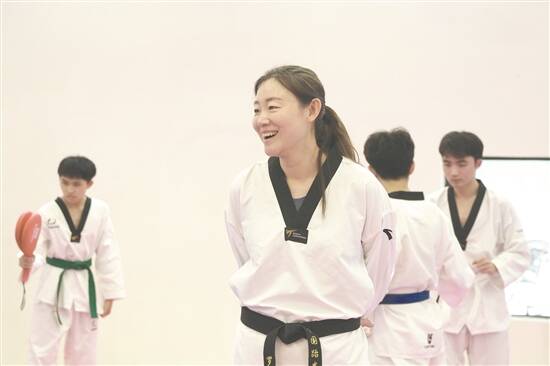 罗微不仅与同学们一同回忆拿金牌的辉煌时刻,也会跟他们分享自己输掉比赛时、受伤时以及处于低谷时是如何重新站起来的,“我也会要求学生写跆拳道课的理论作业,认真去看每一个学生写的上课体会和收获。看到他们从跆拳道礼仪到思维方式,看待世界的方式发生了改变,在跆拳道课堂上收获了友谊,我就觉得自己的工作非常有意义。”罗微说。
