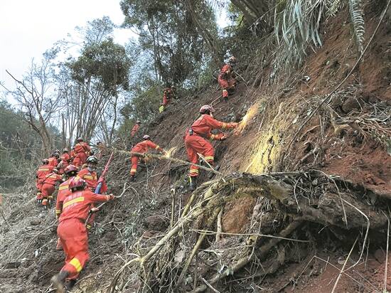 22日,工作人员在事故现场搜索黑匣子 新华社发