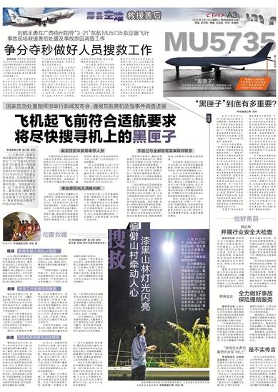 往日偏僻的山村,传出的任何消息都牵动人心。截至3月22日晚记者发稿时,现场已发现失事飞机部分残骸及碎片,并有散落的、带有烧毁痕迹的身份证件、钱包等物品。但仍未有失联人员相关信息传来,记录飞机各种数据的“黑匣子”也在搜寻中。