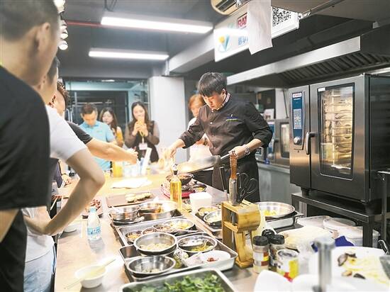 何子键在技术中心厨房为前来的餐饮客户现场演示活动菜品