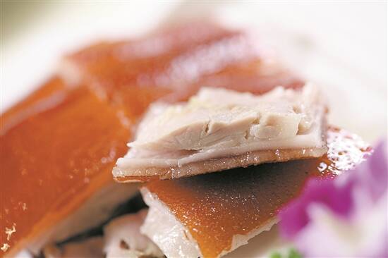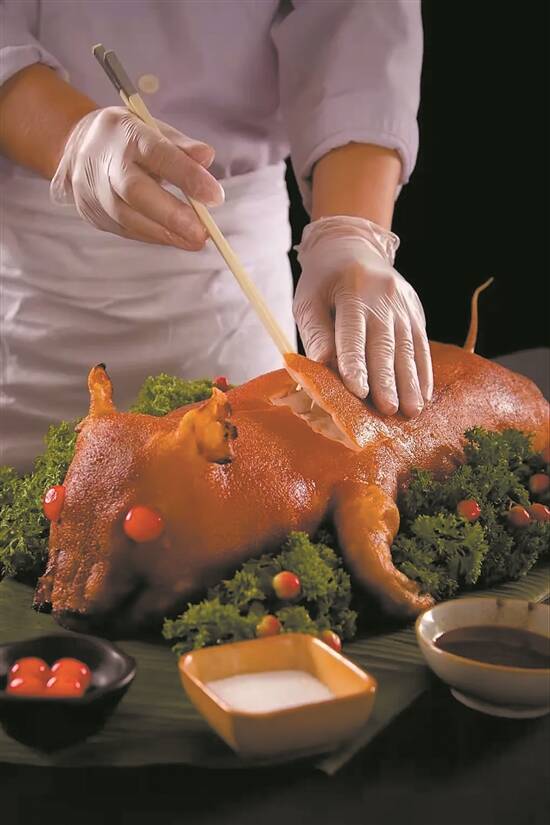 广州花园酒店中餐厅桃园馆的“苹果木烟熏乳猪件”,利用苹果木烟熏烤乳猪件,别有一番风味。粤菜餐厅荔湾亭推出“脆皮烧肉”,猪肉经过腌制和高温烤制后,多余的油脂会溢出,一块肉可以尝到三种口感。