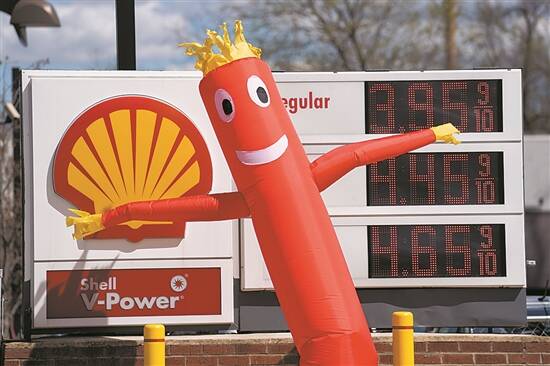 4月12日在美国弗吉尼亚州阿灵顿的一处加油站拍摄的油价牌 新华社发