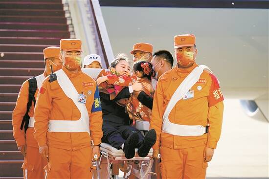 16日,神舟十三号航天员乘组平安抵京,王亚平的家人为她献上鲜花 图片均据新华社