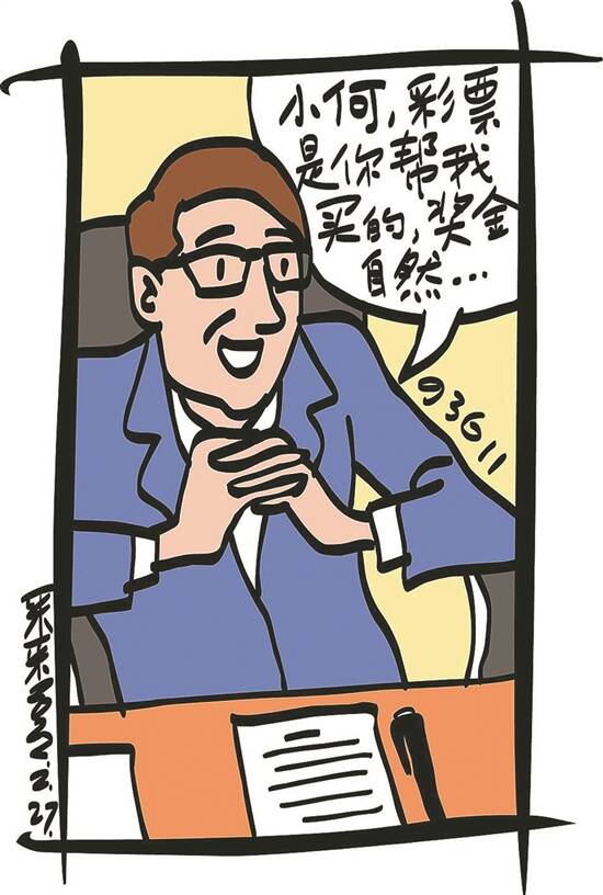 何杰把5000元放在苏总的办公桌上,出了办公室,长舒了一口气。谁知还没走进电梯,又被追了回来。苏总一本正经地问:“小何,彩票是你帮我买的,奖金自然是我的,我全收下了,你没想法吧?”何杰回道:“君子爱财,取之有道。本来就是苏总您的奖金。”苏总笑着点点头,然后从抽屉里拿出一个红包,说:“鉴于你的良好表现,公司决定发给你一笔奖金,以资鼓励。这是1万元,是你应该得的,就别推辞了。”