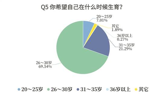 据悉,调查中,大学生们表达出了“自主”“周全”的生育观念,且男生与女生有明显差异。在618份有效问卷中,男生267人,女生351人。对于有生育意愿的大学生,养孩子的过程会让自己感到幸福(20%)、喜欢小孩子(17%)、顺其自然该生就生(17%)是最主要的三大生育动力。生育预期调查结果发现,大学生总体希望理想生育时间不早于26岁。