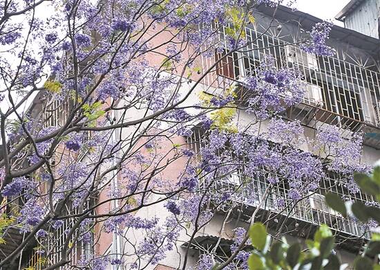 蓝花楹是紫葳科、蓝花楹属的落叶乔木,原产于南美洲的巴西、玻利维亚和阿根廷等国家,适宜生长在热带或亚热带地区,目前在我国海南、广东、广西、云南、福建、四川和重庆等地广为种植。据介绍,“蓝花楹”的美称,最早出现在1956年出版的《广州植物志》。蓝花楹通常在春末夏初开花,有时秋季再次吐艳。