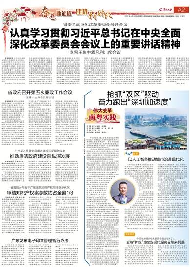 近日,广东省政府新闻办举行新闻发布会。会上透露,《意见》部署的56项重点任务中,探索知识产权证券化等11项已经完成,海洋大学筹建等45项取得重大进展,5方面47条经验做法在全国推广,深圳先行示范作用进一步彰显。这是对深圳承接全新历史使命、不断改革进取、创造新势能的倾情点赞!