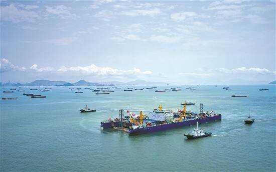 世界首例特长超宽双向八车道海底沉管隧道——深中通道沉管隧道E18管节正进行浮运作业 通讯员供图