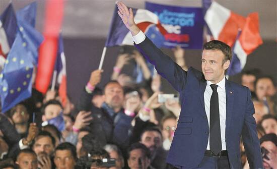 24日,马克龙胜选后向支持者致意 图/人民视觉