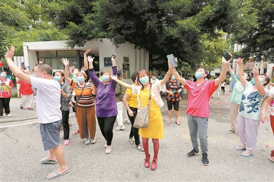 下楼时碰到老友的刘阿姨赶紧上前与之拥抱,虽然每天都跟对方在微信上聊天,但见面还是让她十分欣喜。更让刘阿姨开心的是,她见到了想念已久的孙女,立马给孙女送上红包:“利利是是,希望顺顺利利。”原来,老两口跟孩子住在一个小区,但在不同楼栋。封控期间,一家人无法见面,这也是两位老人第一次跟孙女分别这么长时间。