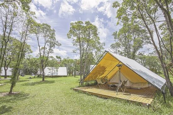 因倡导“不费力露营”,这里对首次接触露营的“小白”尤为友好——可以“拎包入住”,直接走进搭建好的有天幕、帐篷、野餐垫、露营桌椅的沉浸式场景。自带装备的高级玩家则可以在草坪上自行扎营,休闲之余,去探索周边的山野,在山路上徒步、越野,来一次丛林探险。