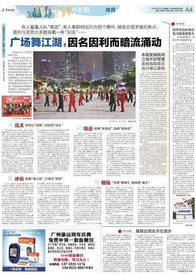 羊城晚报记者查阅发现,2015年,文化部会同体育总局、民政部、住房城乡建设部联合印发了《关于引导广场舞活动健康开展的通知》,2017年国家体育总局下发《关于进一步规范广场舞健身活动的通知》,其中提到不少人们关心的问题,诸如有效规范广场舞健身活动,场地设施统筹安排,合理划分不同健身项目开放时段,不得通过广场舞健身活动非法敛财,不得因广场舞健身活动产生噪音影响周边学生上课和居民正常生活等等。