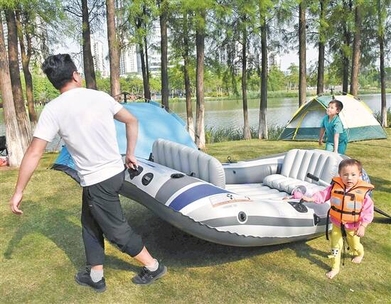 “一刷朋友圈,都是露营的。这个假期不去露营一次,好像还落伍了。”露营轻玩家何恒笑说,假期他选择了由专业人士经营的露营地“轻露营”,“有不少人为了接触自然、接触新事物,选择住帐篷。和住酒店类似,每晚价格要300多元至数千元”。