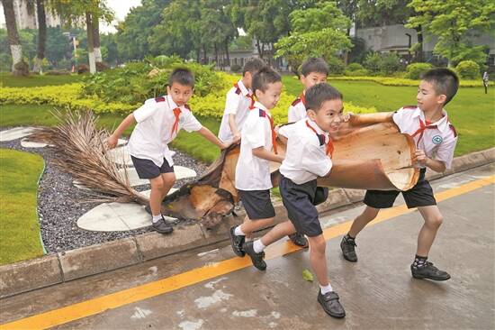 在农林下路小学,学生们组建各小队,与周边的树木“结对子”,进行科普、检测、宣传等活动。他们的劳动实践,不仅仅停留在校园,还主动走出校园,到真切的自然生活中去。