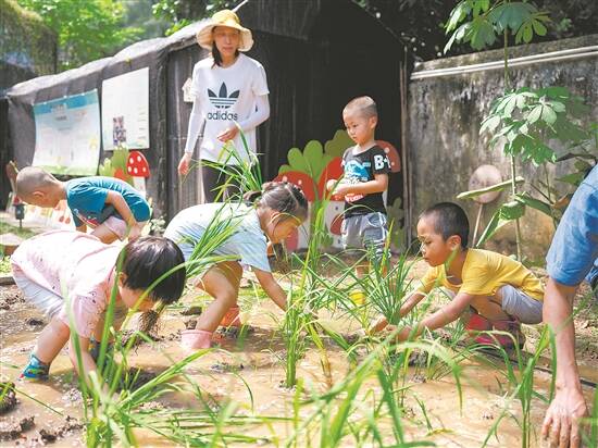 华农幼儿园,小朋友插秧