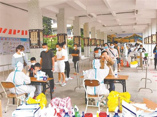 在海滨街道,有多个核酸检测点为市民提供核酸检测服务。记者先后走访40多个检测点看到,在工作人员的引导下,市民正有序排队进行核酸检测(见图)。