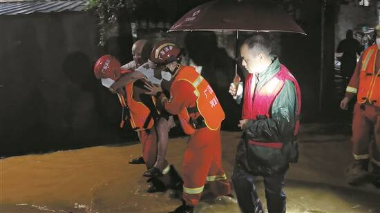 10日晚,河源市东源县各镇街发生不同程度的内涝,多条主干道、居民区和低洼地被淹,多人被困。20时45分,东源县城浩创花语城内涝,干道上有3辆汽车因被水淹无法启动,9名人员被困,其中包括1名儿童。消防救援人员及时将被困人员转移出深水区域。后在返回途中又发现2辆汽车共2人受困,救援人员再次展开救援。至21时15分,被困的11名人员均被疏散转移至安全地带。