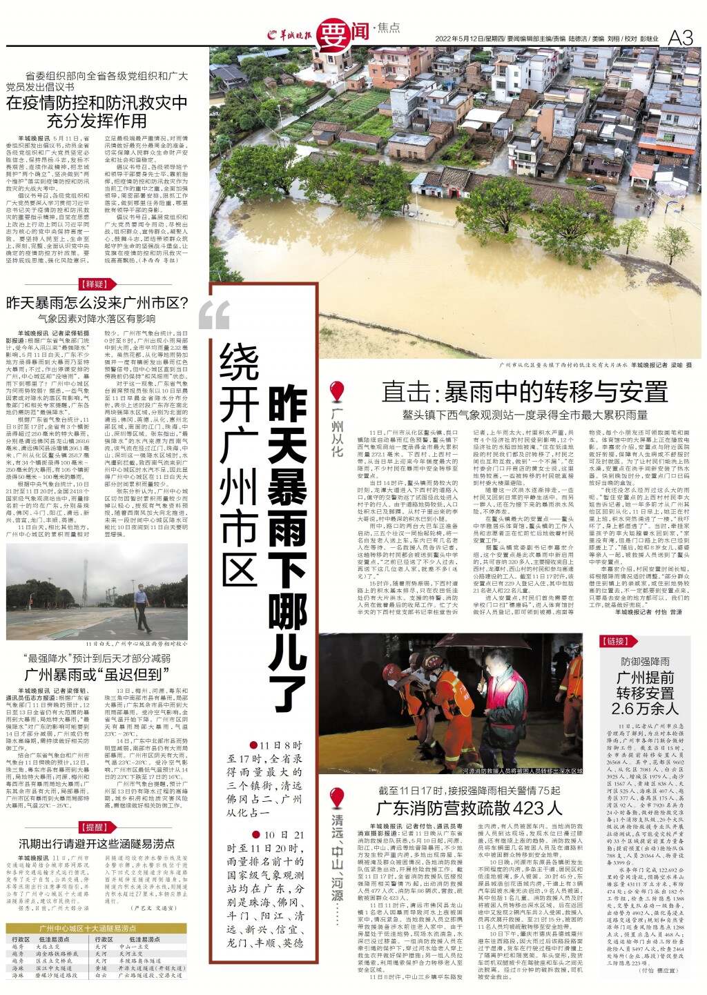 广东消防营救疏散423人
