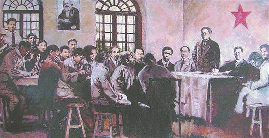 团一大召开场景油画(作者:卜绍基等) 共青团广州市委员会供图
