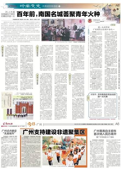 回望百年风云,1922年5月5日至10日,中国社会主义青年团第一次全国代表大会,正是在岭南广州召开,中国社会主义青年团(中国共产主义青年团前身)从此正式成立。