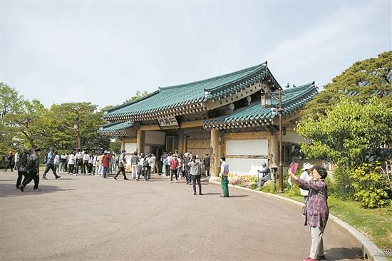 5月12日,在韩国首尔,游客参观青瓦台官邸。