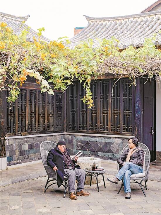 于坚(左)与友人在云南建水合影