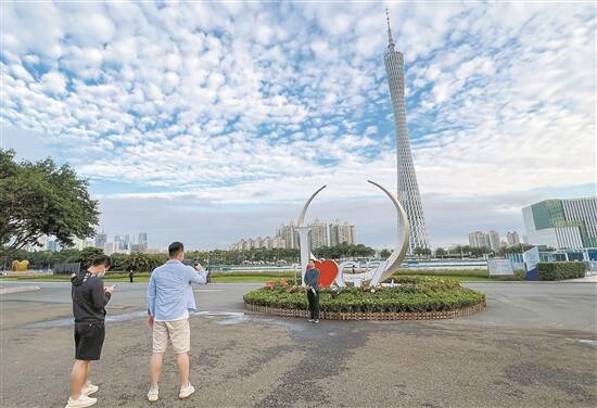 昨日下午,广州海心沙,市民游客打卡“广州蓝” 梁怿韬 摄
