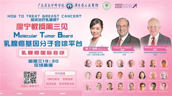据了解,廖宁教授携手众多国内外的乳腺癌领域顶尖专家学者,搭建了“廖宁教授周三见”乳腺癌基因分子会诊平台,以国际会议的形式于每周三19点30分进行线上直播,针对遴选出的典型乳腺病例给予在线免费诊疗及学术交流,乳腺癌患者可提前提交资料,有机会获得全球顶尖乳腺癌专家免费会诊机会。
