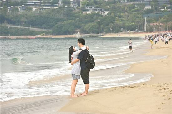大鹏湾大梅沙海滨公园里的游人 羊城晚报记者 王磊 摄