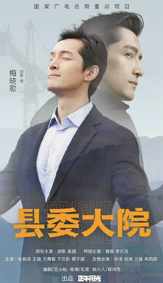 5月16日,电视剧《县委大院》在安徽举办开机仪式。《县委大院》编剧王小枪,导演孔笙,演员胡歌、吴越、张新成等人现身。《县委大院》由王小枪编剧、孔笙执导、侯鸿亮任制片人,正午阳光出品。这是胡歌继《琅琊榜》之后与孔笙导演的再度合作,他在当日也以演员代表身份发言。
