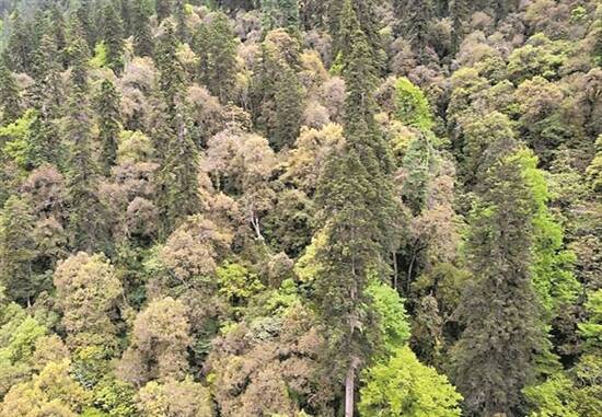 云南黄果冷杉林中发现“中国最高的树”,高度为83.2米 新华社/图