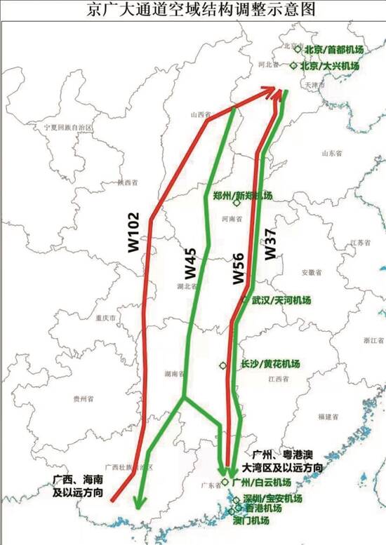 京广大通道空域结构调整示意图