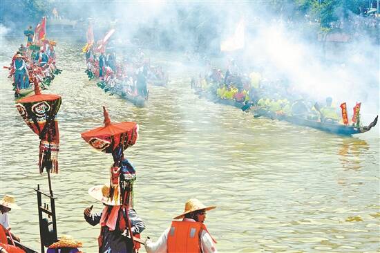 车陂,龙船“探亲” 羊城晚报记者 邓勃 摄