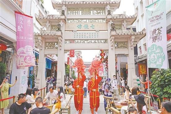 在活动现场,不仅举办了“全球云上茶会”,联动国际茶叶组织、商协会代表以及国内56个民族以录制视频的形式在“云”上“相聚”,共享茶香。同时,围绕潮州工夫茶“天地人”的核心主题,在牌坊街摆起“潮·工夫茶宴”,市民坐着竹编椅,在袅袅潮音中悠然喝着工夫茶,呈现出一场全民饮工夫茶的文化盛宴,体现了“潮州工夫千万家”的特色。